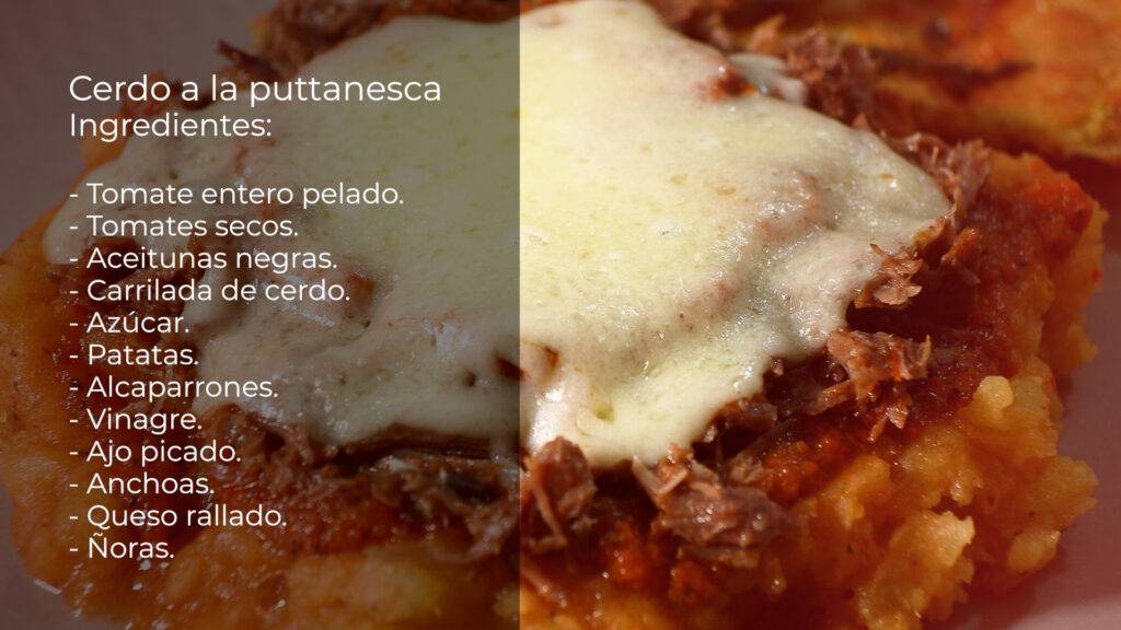 Se trata de una receta llena de carácter, donde la jugosidad del cerdo se combina con la potencia de la clásica salsa puttanesca y el toque crujiente de unas crackers elaboradas con verduras. Una propuesta ideal para quienes disfrutan explorando nuevas combinaciones y técnicas en la cocina.